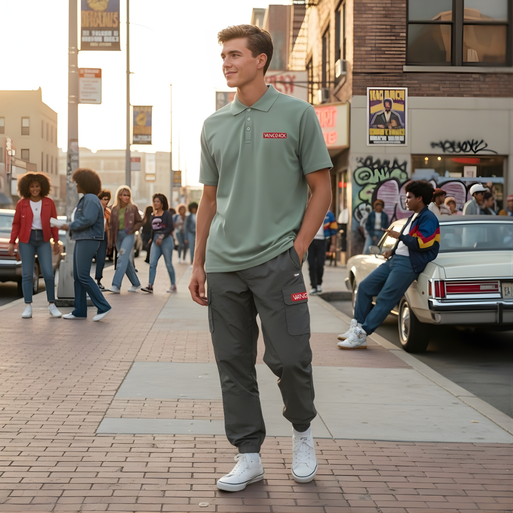 Step into effortless style with a nod to the classics. This look blends a soft pastel polo with relaxed cargo joggers, capturing the laid-back energy of the streets. Perfect for those who value comfort, confidence, and timeless cool.